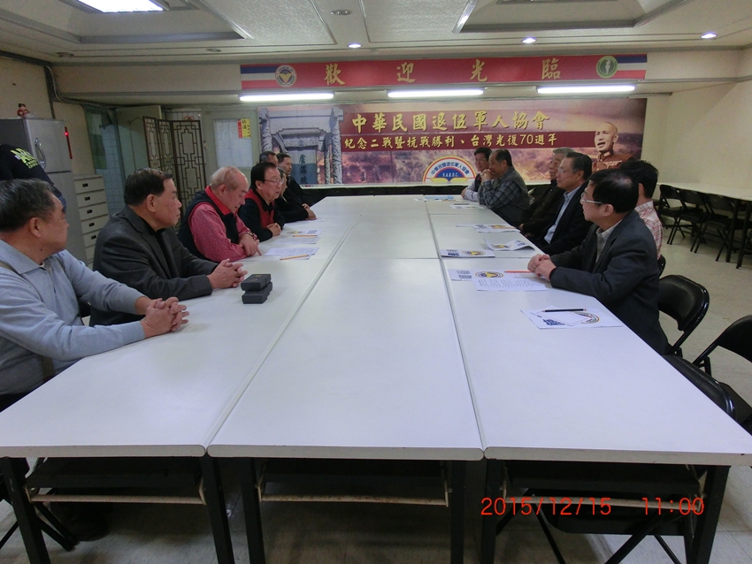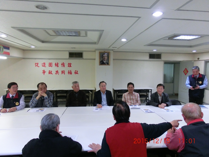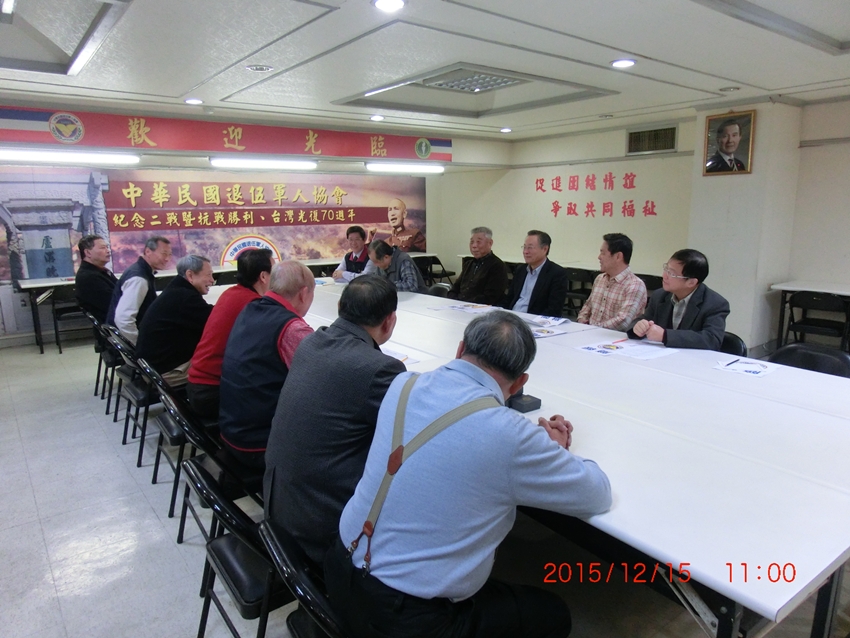 中華民國中央軍事院校校友總會理事長嚴明〈前國防部長〉一行五人,於104年12月15日上午11時蒞本會訪問,理事長高仲源率工作幹部熱忱歡迎,秘書長金國樑簡報後,雙方就如何服務退伍軍人袍澤及加強兩會合作交流,提出廣泛研討及交換意見。