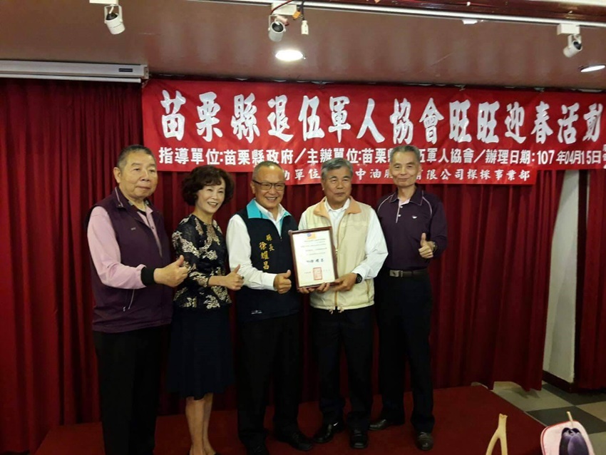 苗栗縣退伍軍人協會於4月15日(星期日)在苗栗市國揚餐館,舉辦「旺旺迎春活動暨召開第十屆第三次會員代表大會」,18鄉、鎮、市會員代表計117人參加盛會(目前會員人數4,432人)。大會由理事長徐耀昌(現任苗栗縣縣長)全程主持,並邀請苗栗縣榮民服處處長陳桂美及苗栗縣中央軍事院校校友會理事長余文秋等,數個退伍軍人團體主管列席。