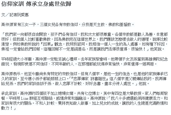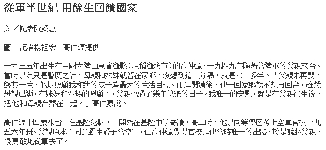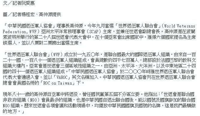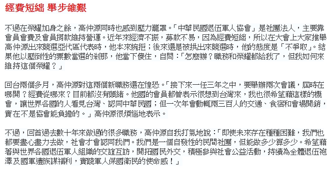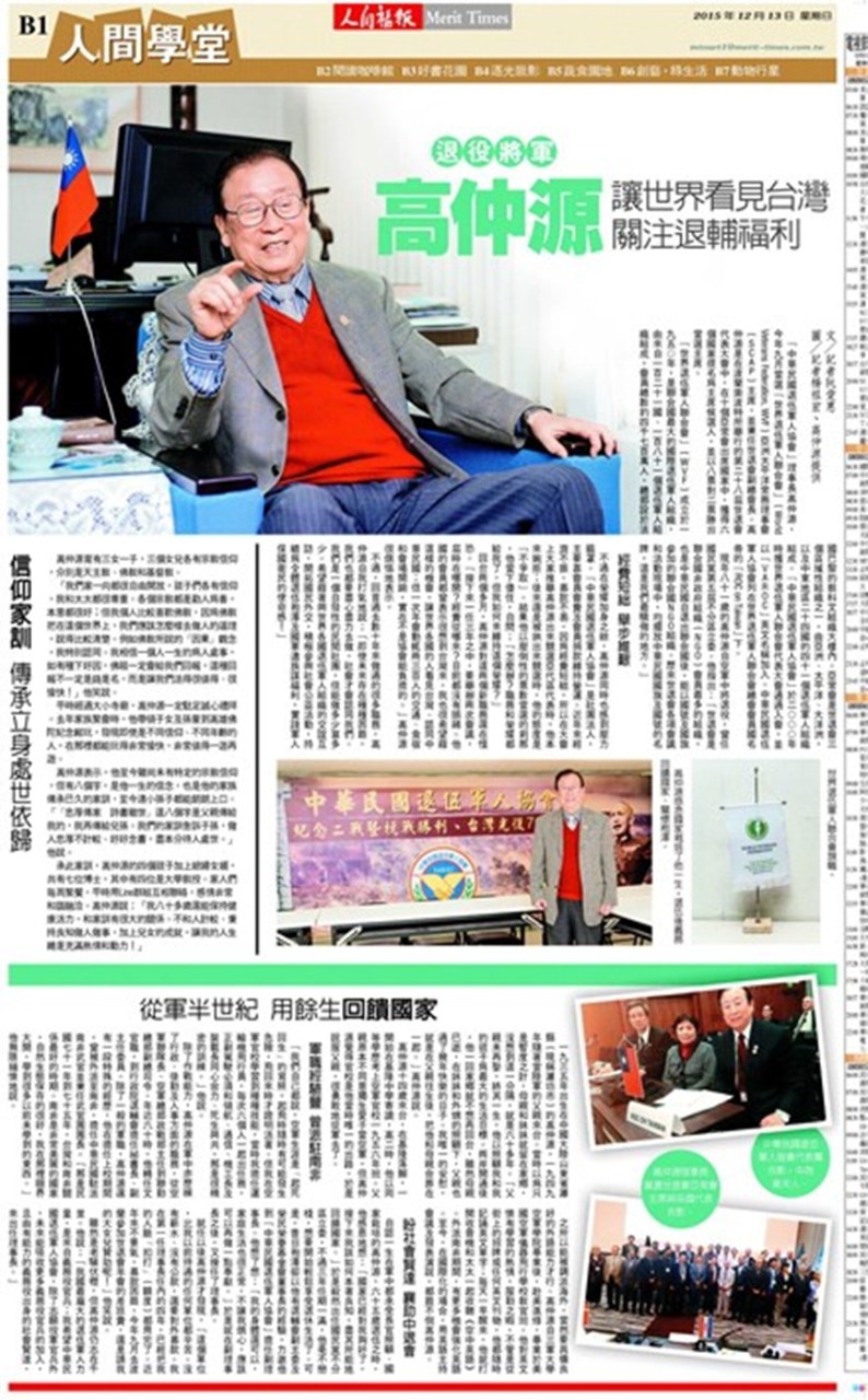 本會理事長高仲源於104年12月11日接受人間福報記者阮愛惠專訪,標題:「退役將軍高仲源-讓世界看見台灣關注退輔福利」;訪問詳細內容刊登在人間福報104年12月13日B1人間學堂全版內。