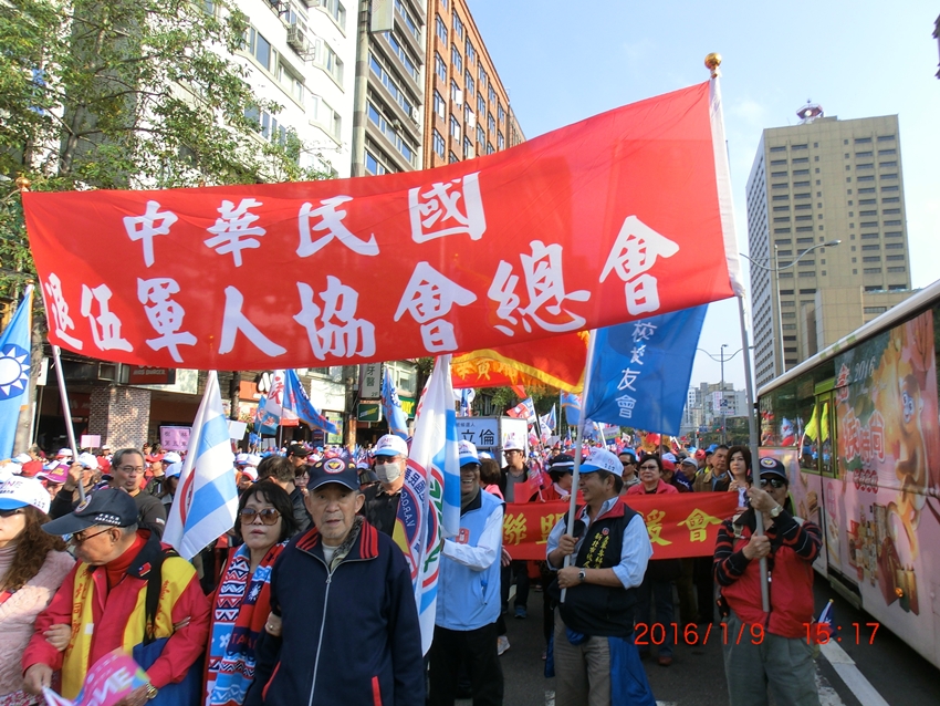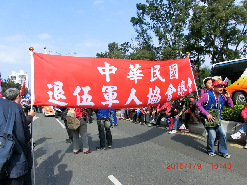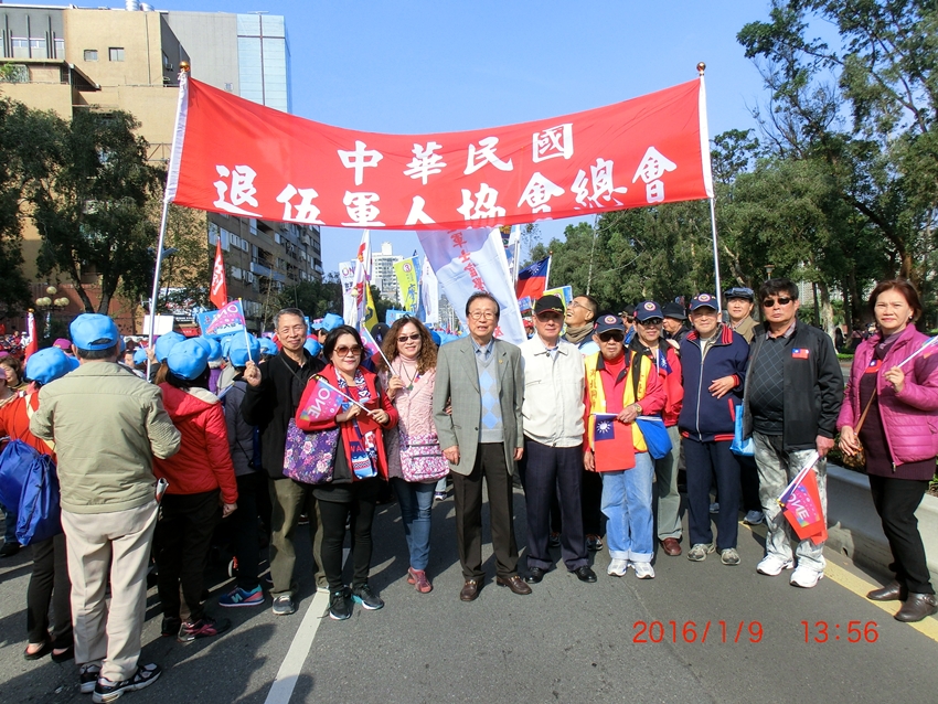 本會於105年1月9日下午,為支持國家安定、社會祥和,為廣大退伍軍人發聲,參加「自由廣場全民大團結為台灣的安定而走-你,就是力量」遊行活動。本會動員北部地區台北市退伍軍人協會、新北市退伍軍人協會、婦女會退伍軍人協會、總會工作人員及眷屬約三百餘人,在理事長高仲源的率領下,從台灣大學羅斯福路校門口緩緩向中正紀念堂前進,沿路上本會高唱愛國歌曲、高呼口號,以實際行動支持中華民國及候選人。