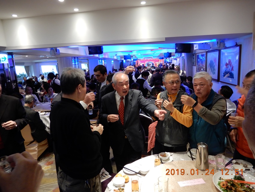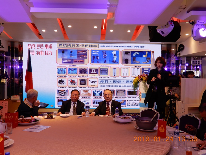總會於108年1月24日(星期四)中午11時,假台北市第一大飯店敘香園餐廳舉辦107年歲末聯歡大會;參加人員計有北部各縣市協會、直屬聯區會會員代表及貴賓三百餘人,大會由理事長吳其樑主持。另邀請有國民黨主席吳敦義、立法院前院長王金平、本會榮譽理事長高仲源、指導委員會王文燮等多位上將、立法委員、市議員、總會顧問等貴賓;致詞時均向會員代表祝賀新春佳節愉快、身體健康、萬事如意。聯歡餐敘席開三十餘桌,除備有美酒佳餚外,特別邀請榮民總醫院殘障輔助中心王馥庭組長,講解如何申請及使用輔助輔具;現場並安排有精彩歌舞表演及摸彩活動,場面溫馨歡樂。