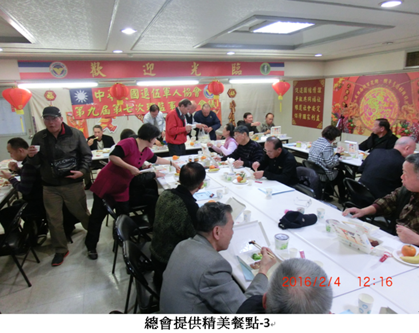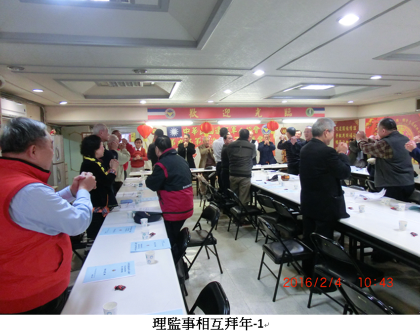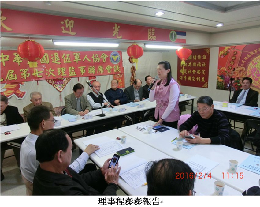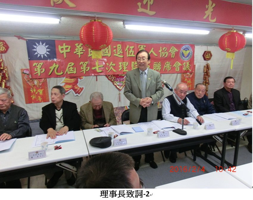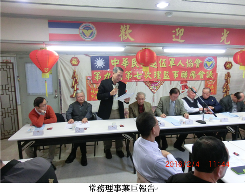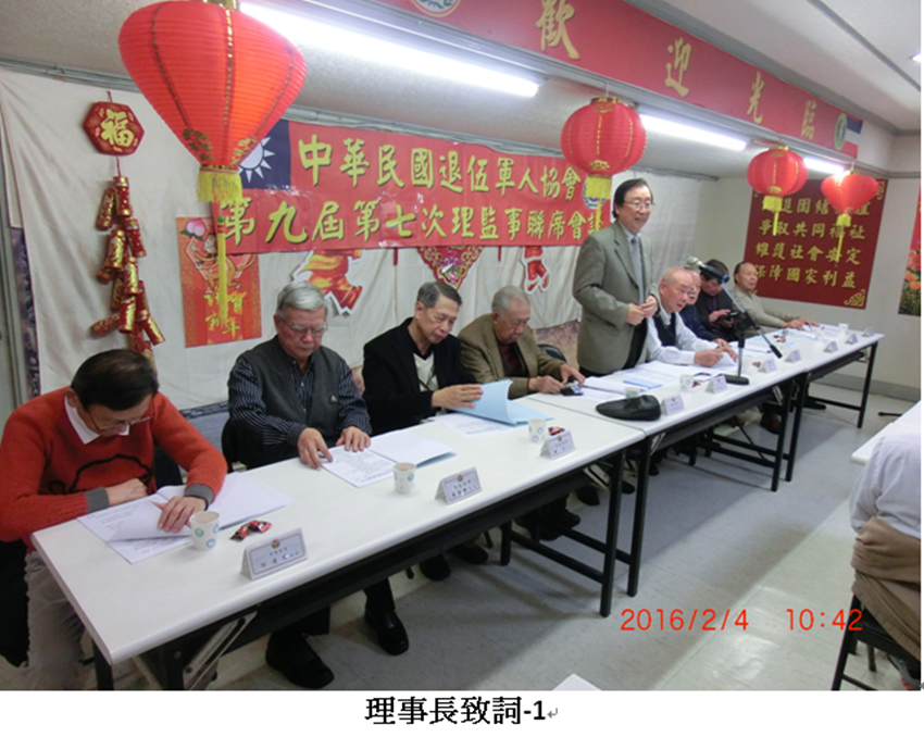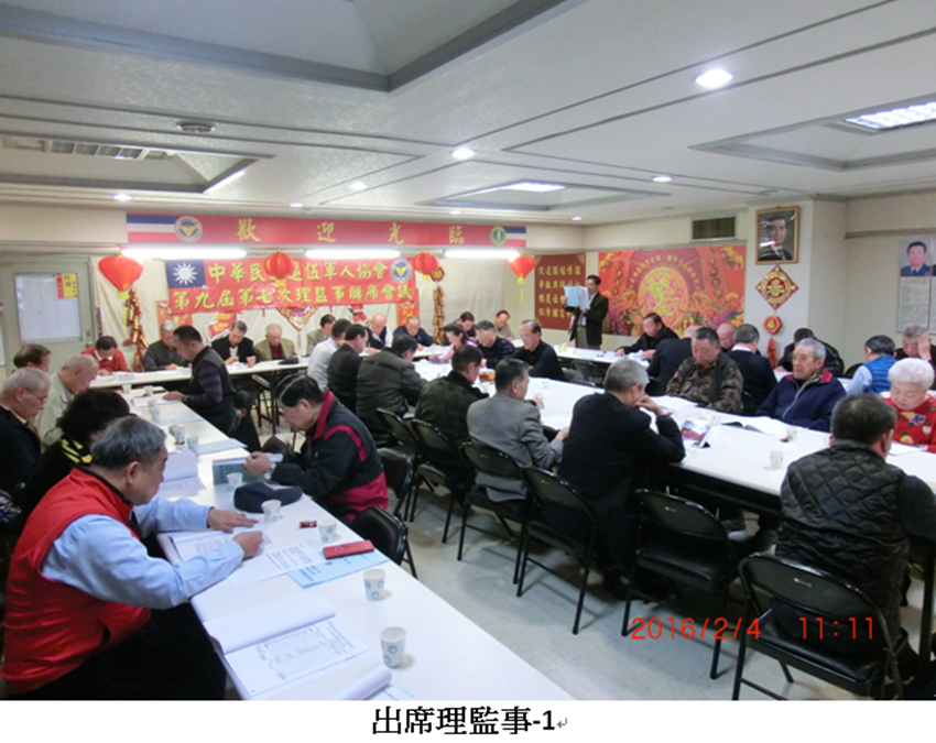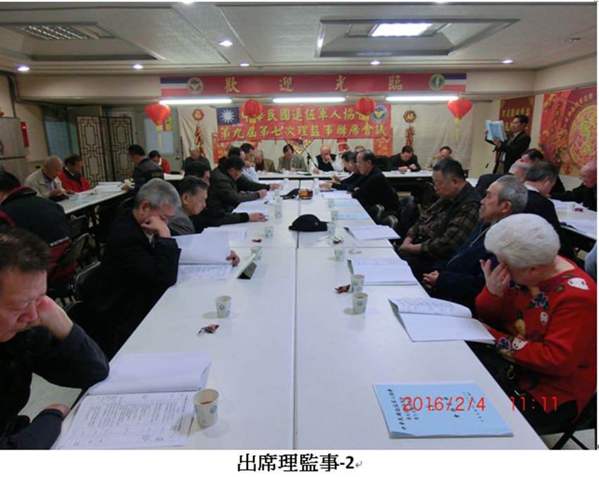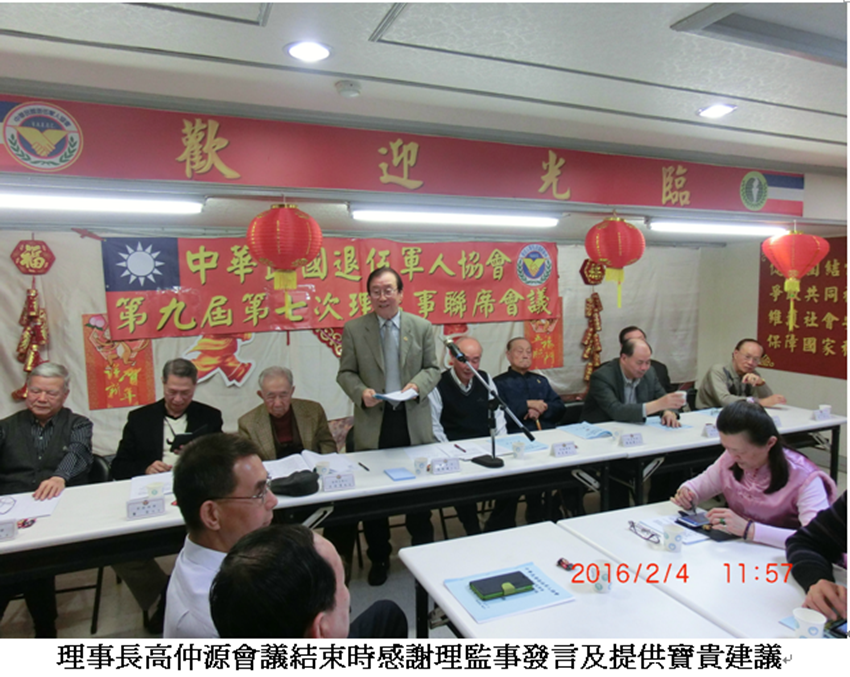 本會於105年2月4日上午,假台北總會會議室召開第九屆第七次理監事聯席會議,出席與會理監事及工作人員約六十餘人參加,會議首先由理事長高仲源致詞,感謝各位理監事於農曆新年前不辭辛勞前來參加會議。會中並聽取秘書長金國樑工作報告、行政室副主任朱育珣財務報告後,各理監事針對會議資料發言踴躍並提出看法和建言,其中新竹市退伍軍人協會理事長周德華建議,今年農曆年節後,總會將於3月3日舉辦「105年春節聯誼會」時,請各理監事共襄盛舉提供摸彩禮品以增大會光彩,獲與會常務理事黃紹傑、常務理事嚴以勤及各理監事一致鼓掌贊同,會議在大家互拜新年愉悅氣氛中結束。會後由本會為與會理監事提供精美便當享用。