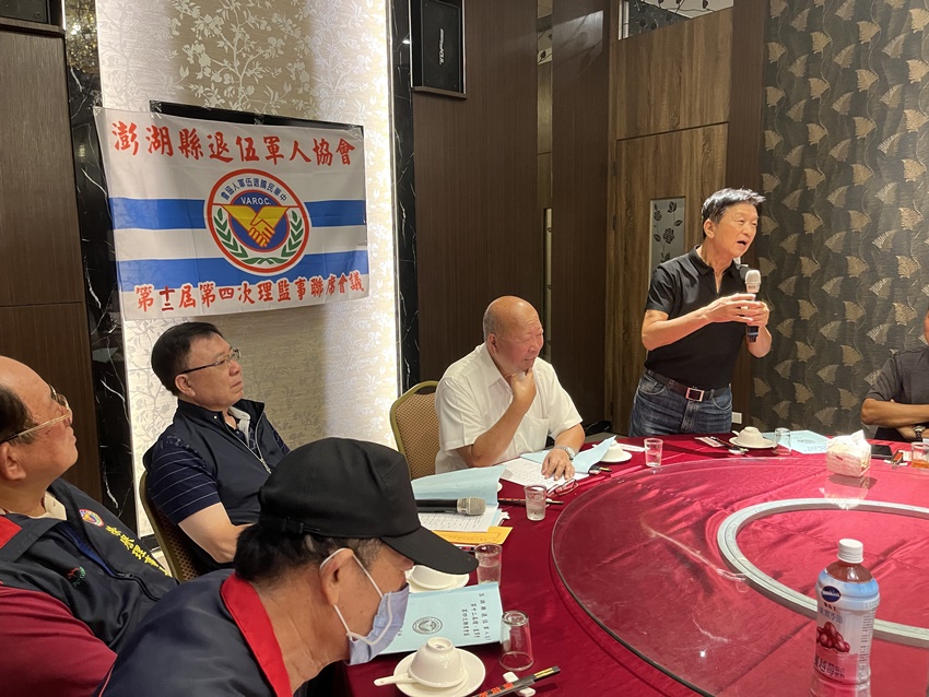 澎湖縣退伍軍人協會於112年6月20日(星期二)晚間18時,假馬公市順成會館召開第十二屆第四次理監事聯席會議,會議由呂光宇理事長主持;理事15員、監事6員,合計21人出席。榮譽理事長胡松榮議員、榮譽理事長葉竹林前市長、榮譽理事長吳華誌,列席指導;總會常務監事葉徳馨,代表吳其樑理事長致詞並向與會理監事,祝福端午佳節,閤家平安 喜樂,身體健康。 本此會議,由鐘富泉總幹事提出會務報告,會中並決議今年9月2日,將舉辦第十二屆第二次會員大會活動;會後舉行端午佳節聯誼餐會。