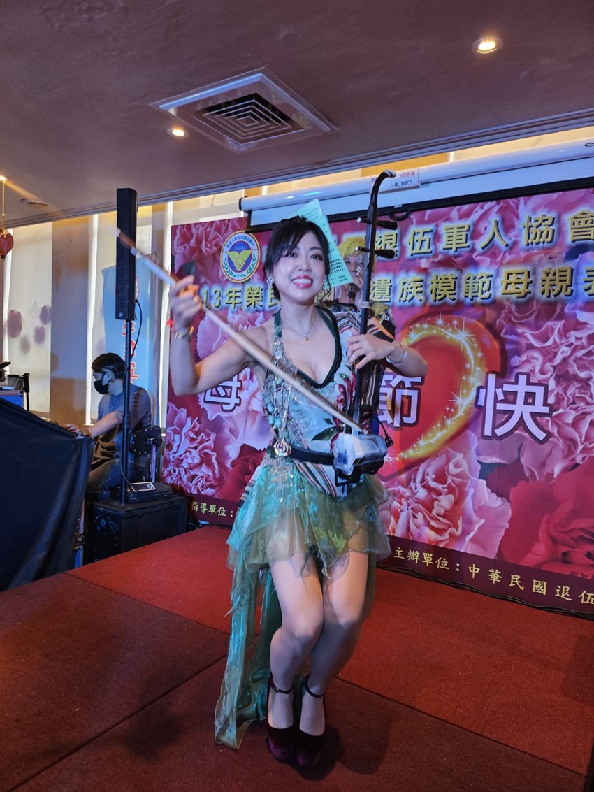 餐會時,本會特別安排邀請二胡女神馮啟絜老師公益演出,吳理事長特別頒贈馮老師擔任本會愛心公益大使聘書,現場在馮老師精湛的琴藝及帶動下,為大會掀起高潮,氣氛溫馨感人,大會圓滿落幕。