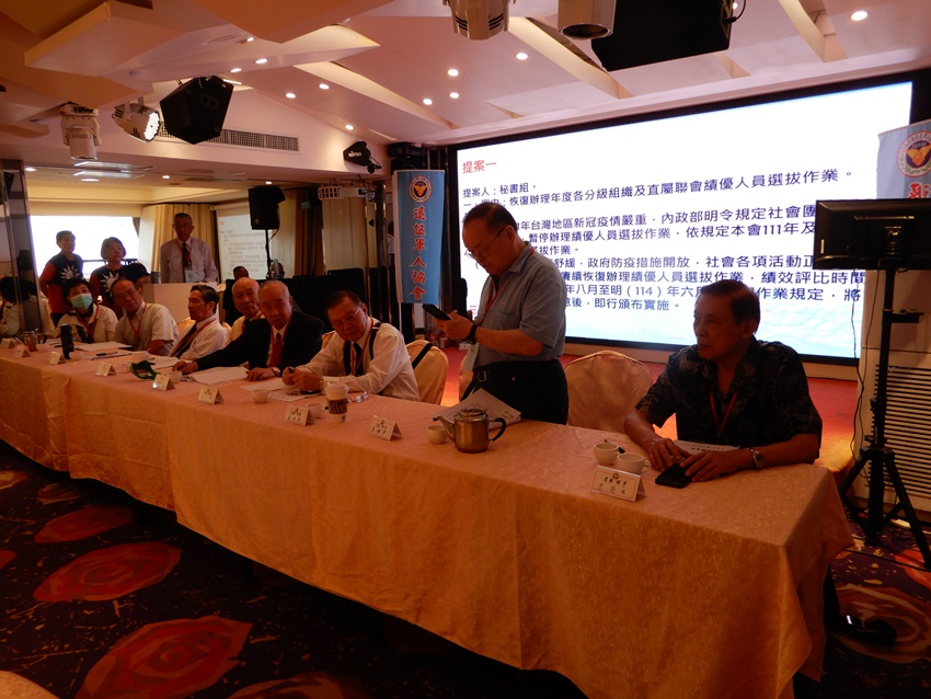 總會於113年7月16日(星期二)上午10時,假台北市中山區南京東路二段63號「敘香園餐廳」舉辦「第十一屆第二次會員大會、紀念抗戰87周年、慶祝創會36周年」大會,本次出席人員:應到220人,實到195人(請假25人),大會由吳其樑理事長主持。