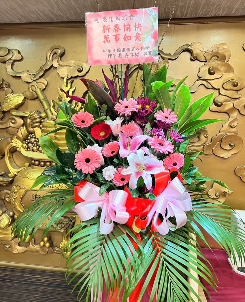 本會直屬第15聯會(統一通信指揮部)於114年2月15日(星期六)11:30時,假台北市聚馥園餐廳舉辦114年新春團拜聯誼餐會,在榮譽會長葉指揮官信康將軍,現任會長姜指揮官國慶將軍邀集下,會員熱情踴躍出席,餐會席開15桌。總會吳其樑理事長特派金國樑副理長率同仁代表參加,金副理長致詞時轉達吳理事長向會員們問候之意,並共襄盛舉致送高架花籃乙對。