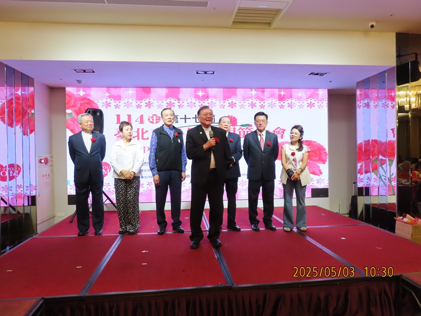 台北市退伍軍人協會於114年5月3日(星期六)上午9時30分,假台北市新生北路二段鉅星匯國際宴會廳晶鑽廳舉辦「第17屆臺北市各界模範母親表揚大會」,現場有台北市退伍軍人協會、台北市各區民眾服務社、台北市婦女會、台北市中央軍事院校校友會等單位,選拔模範母親及家屬,熱鬧非凡,席開33桌。總會受邀,吳其樑理事長特派劉艾迪副理事長、資訊室喻雲寶主任代表參加,並致送20吋生日大蛋糕供在場模範母親饗用,並祝所有母親佳節快樂。