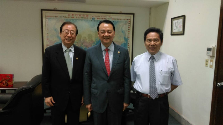 理事長高仲源先生率秘書長金國樑先生,於104年11月20日上午,前往拜會外交部NGO國際事務會新任大使兼執行長周麟先生,