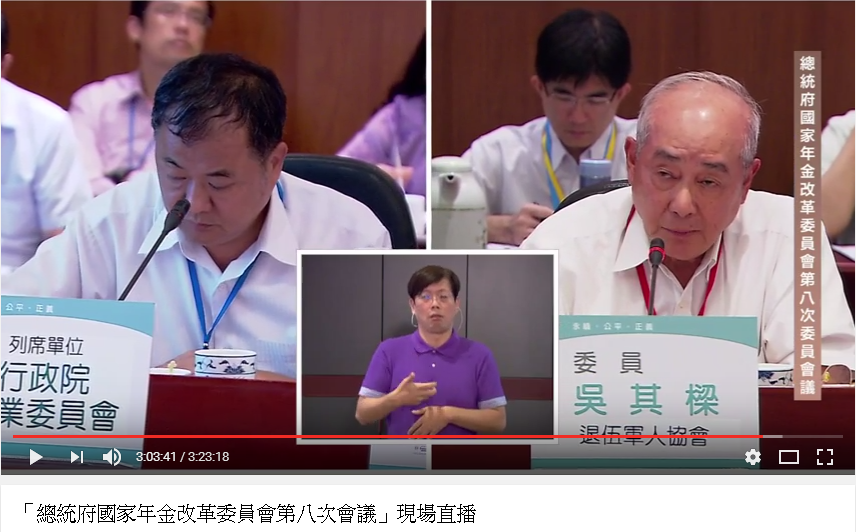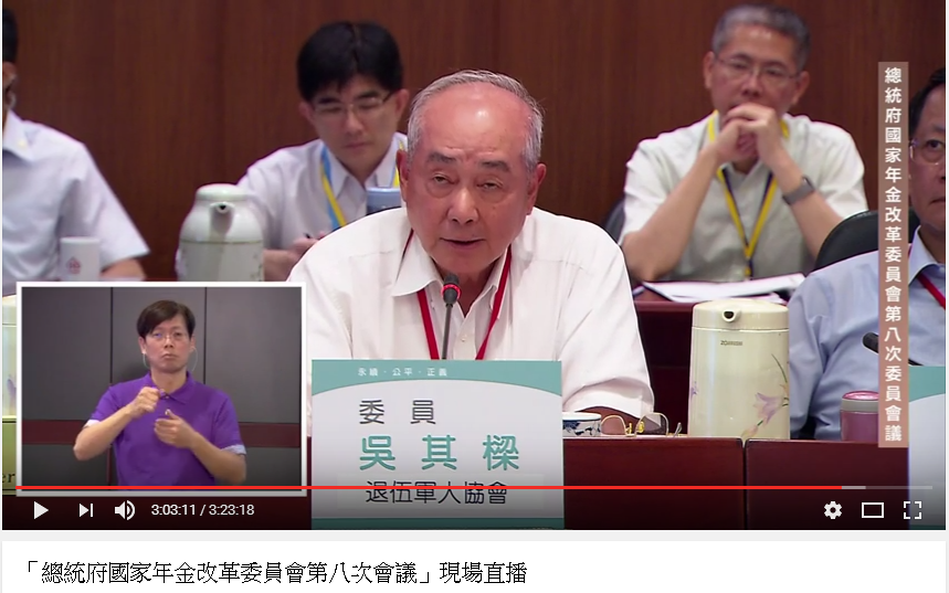 【總統府國家年金改革委員會議】本會吳其樑副理事長代表退伍軍人協會參加第八次年金改革委員發言內容
