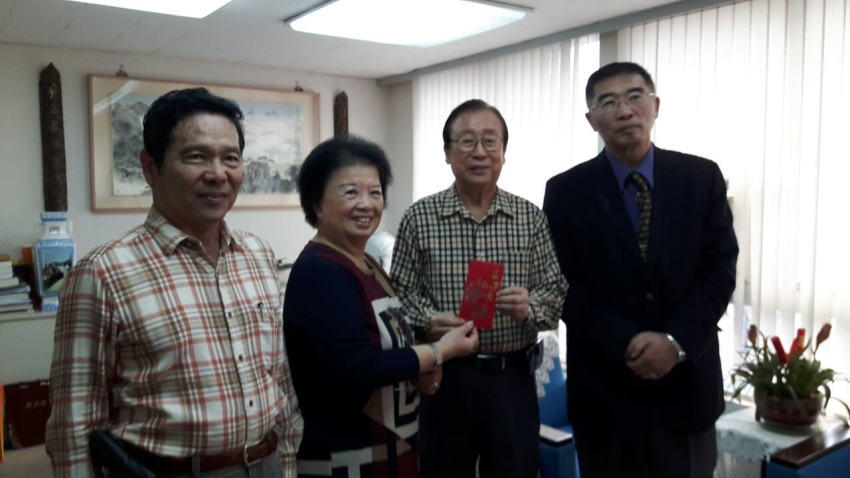 本會旅加拿大安大略協會理事長吳龍光先生,於104.11.23上午偕其母周女士拜會總會理事長高仲源,吳理事長除敘述此段期間該會在加拿大退伍軍人組織各項活動狀況,並捐贈本會一萬元,由高理事長代表接受,雙方相談甚歡,總會高理事長特贈繡有本會全銜之便帽12頂,以示謝意。
