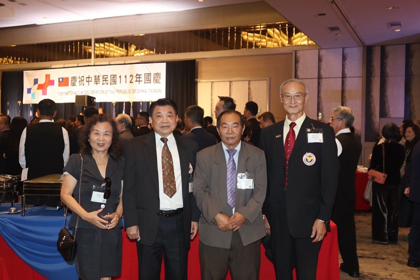 中華民國退伍軍人協會南加州分會,日前分別受到邀請參加及出席慶祝中華民國112年雙十國慶,10月6日首先出席了由台北經文處主辦的國慶酒會,出席當天酒會現場退協人員有:顧問李金生夫婦、張自豪夫婦、梁永泰、廖美華、黃景彬夫婦、馬國威、廖介民夫婦、謝傳佐、楊震南理事長夫婦、張靖國副理事長、王北寜祕書長、陳百其常務理事夫婦、陳飛虎常務理事夫婦、理事有楊毓英、楊家淦、林明等。