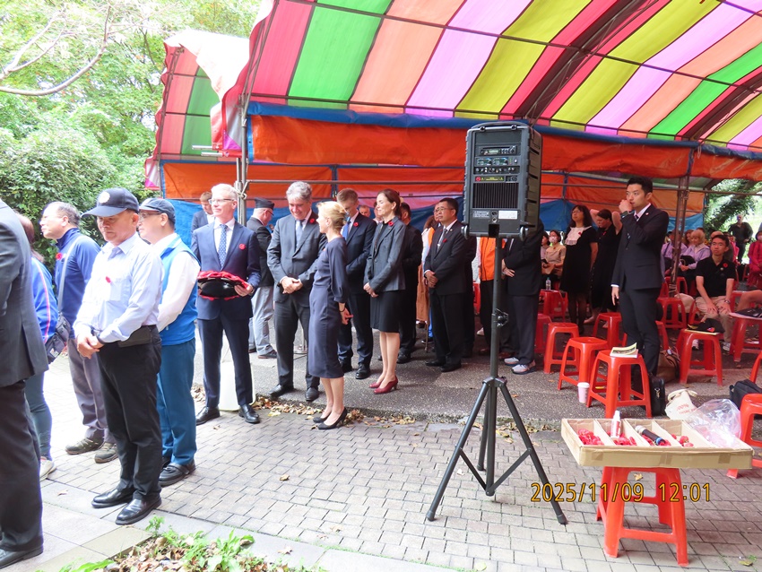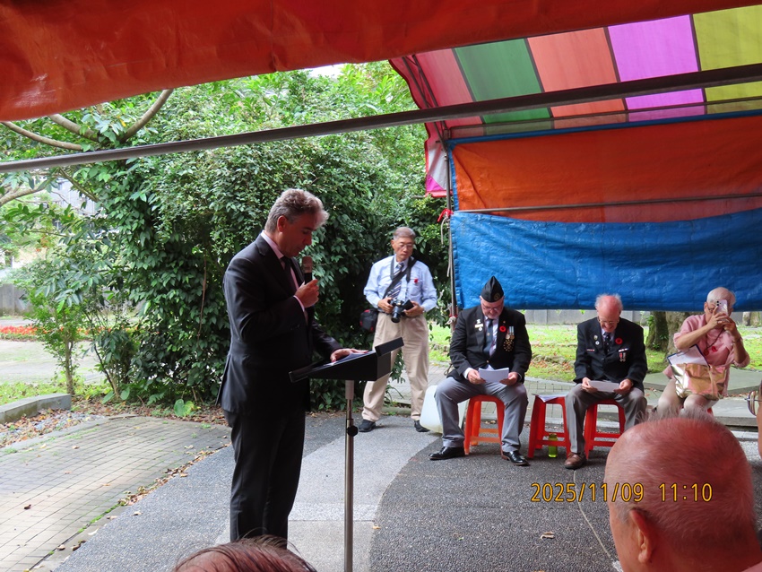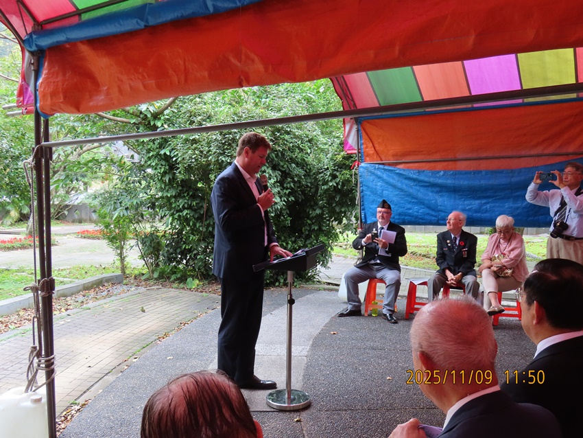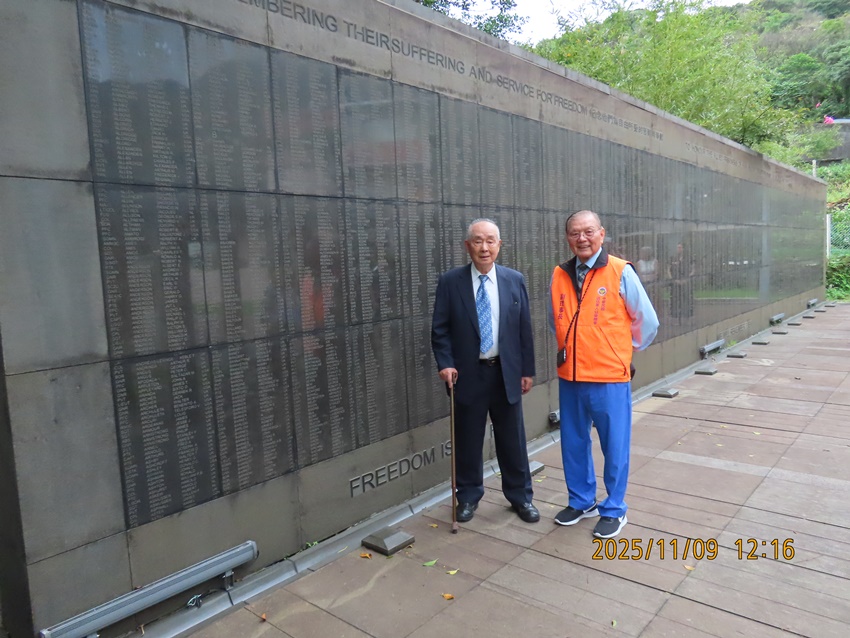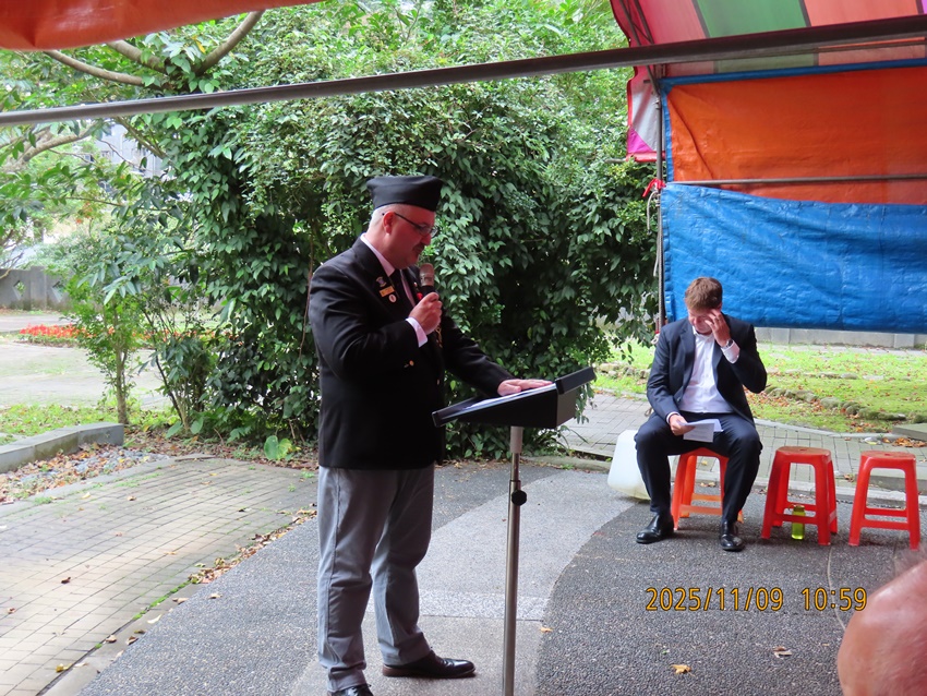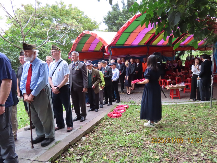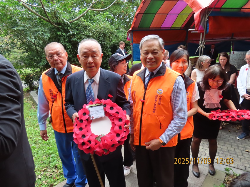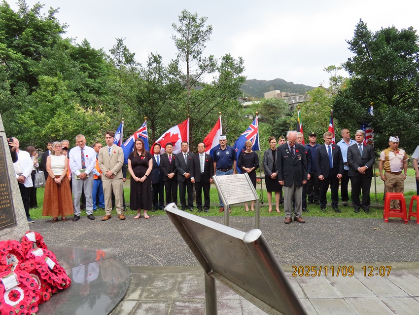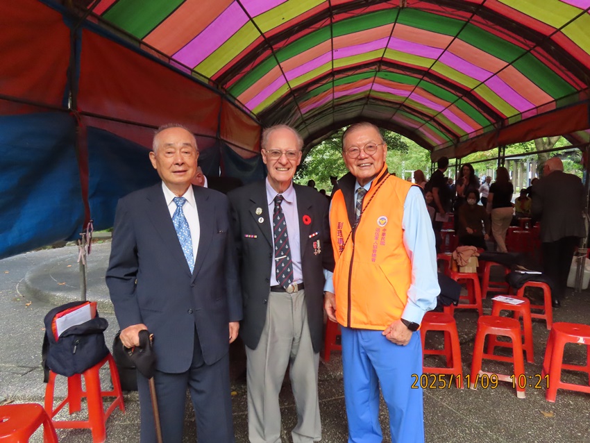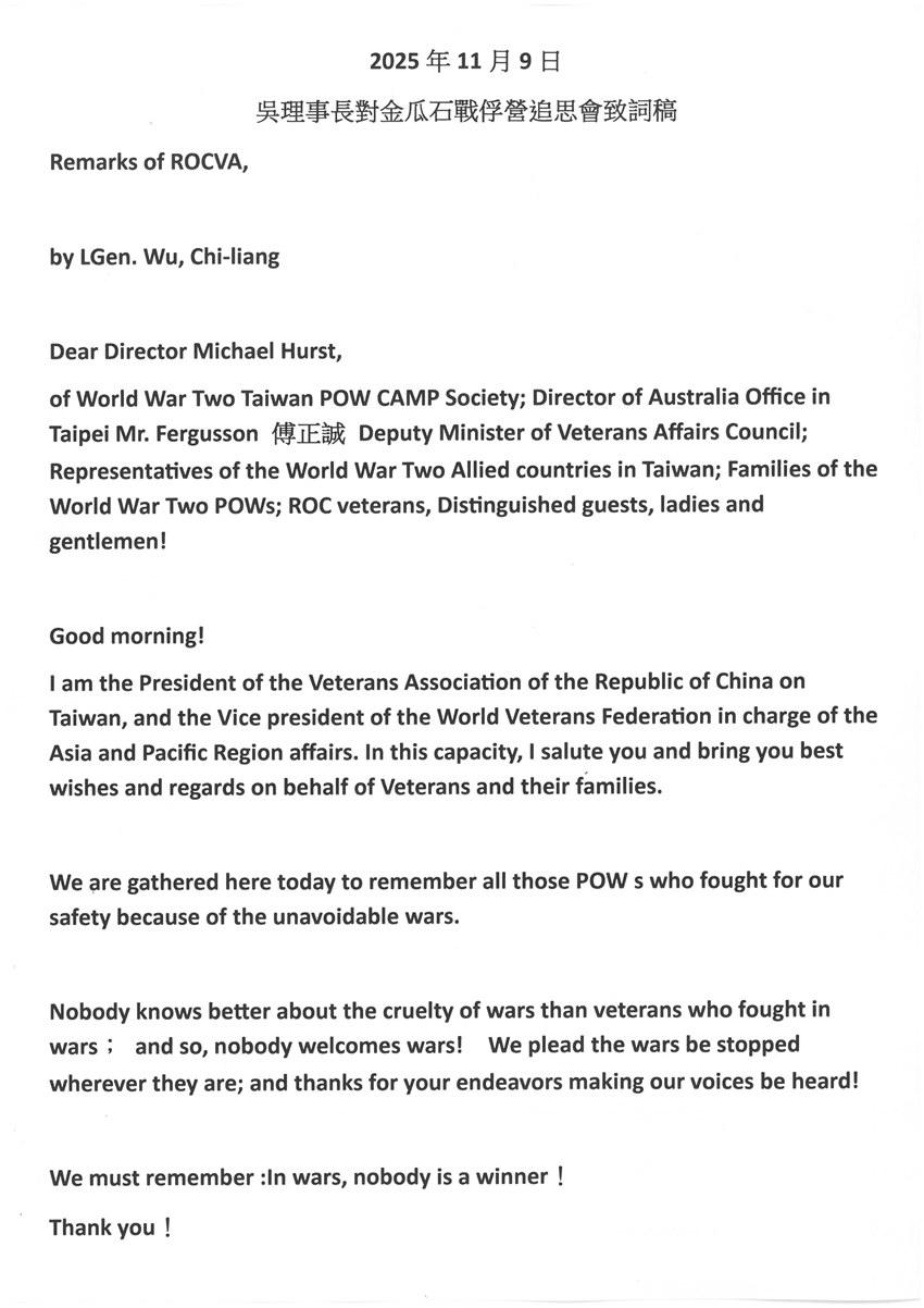 中華民國退伍軍人協會理事長吳其樑中將,以兼任世界退伍軍人聯合會「副總會長」暨亞洲太平洋地區「理事會主席」雙重身分,率總會相關人員於114年11月9日第二個星期日上午11時,歐洲停戰日的傳統紀念時刻,受邀出席在新北市瑞芳金瓜石的戰俘營紀念公園追思大會。