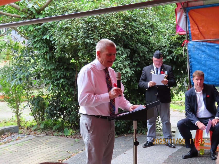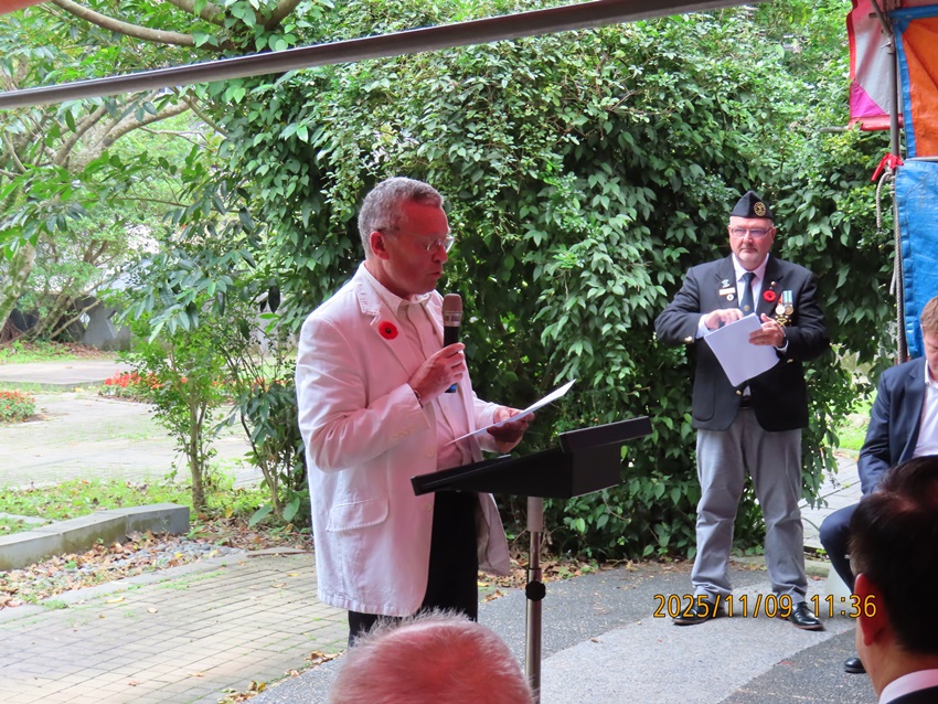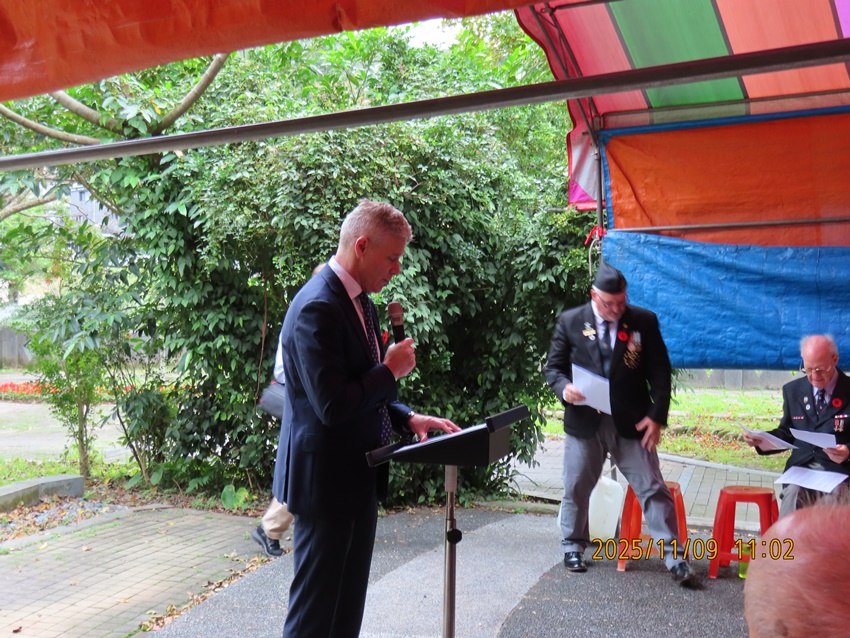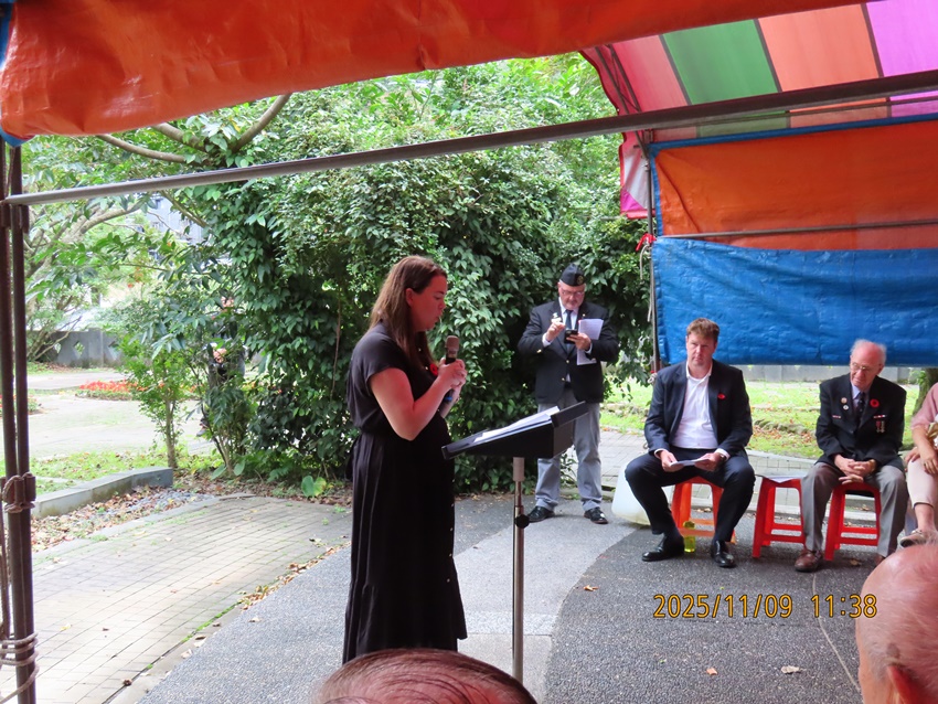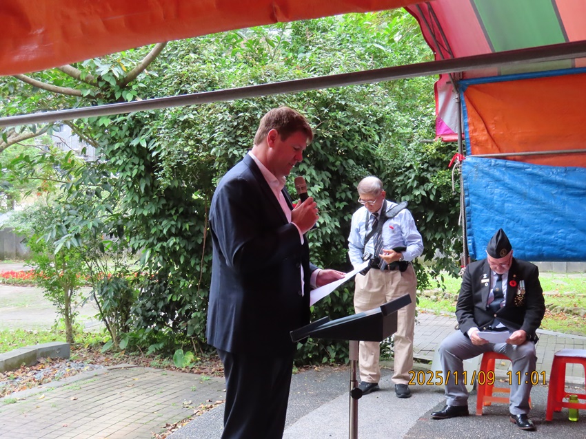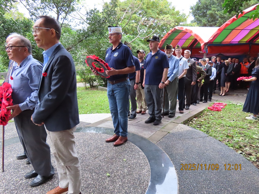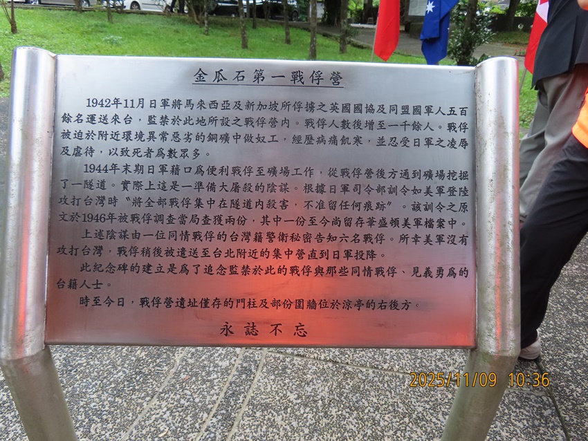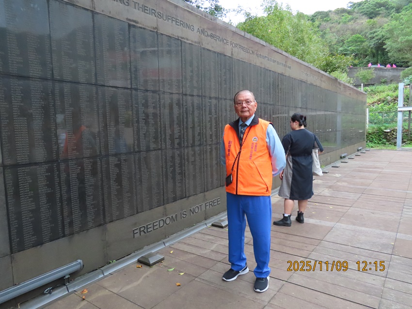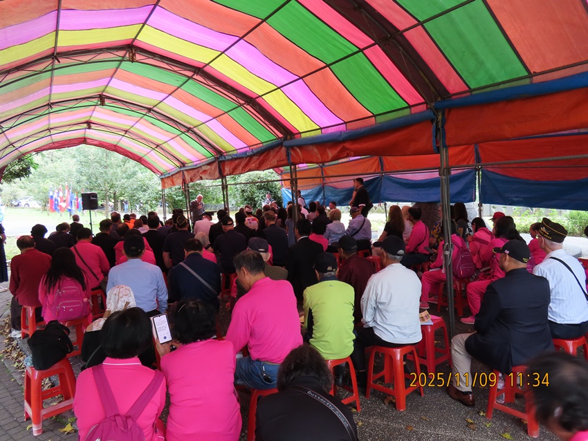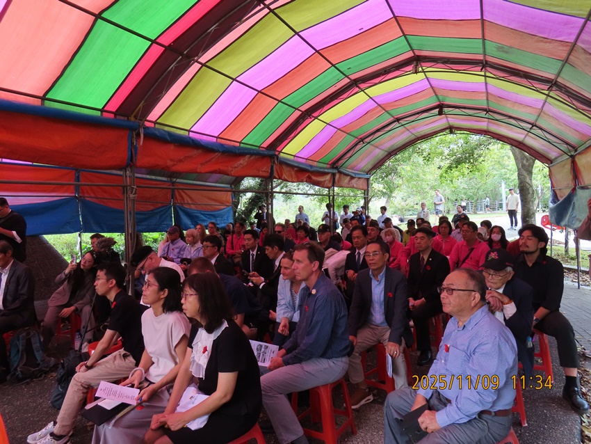 中華民國退伍軍人協會理事長吳其樑中將,以兼任世界退伍軍人聯合會「副總會長」暨亞洲太平洋地區「理事會主席」雙重身分,率總會相關人員於114年11月9日第二個星期日上午11時,歐洲停戰日的傳統紀念時刻,受邀出席在新北市瑞芳金瓜石的戰俘營紀念公園追思大會。